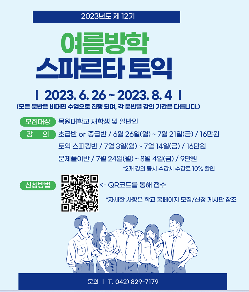 학생들의 어학실력 향상 및 공인어학성정 취득을 위해 진행하는 여름방학 단기 어학프로그램 입니다. 각 반 30명 선착순 모집 중이오니, 희망하는 학생들은 접수바랍니다.