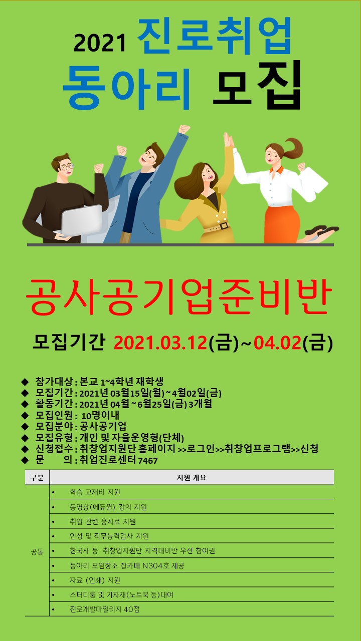 2021년 1학기 진로취업동아리 모집 안내