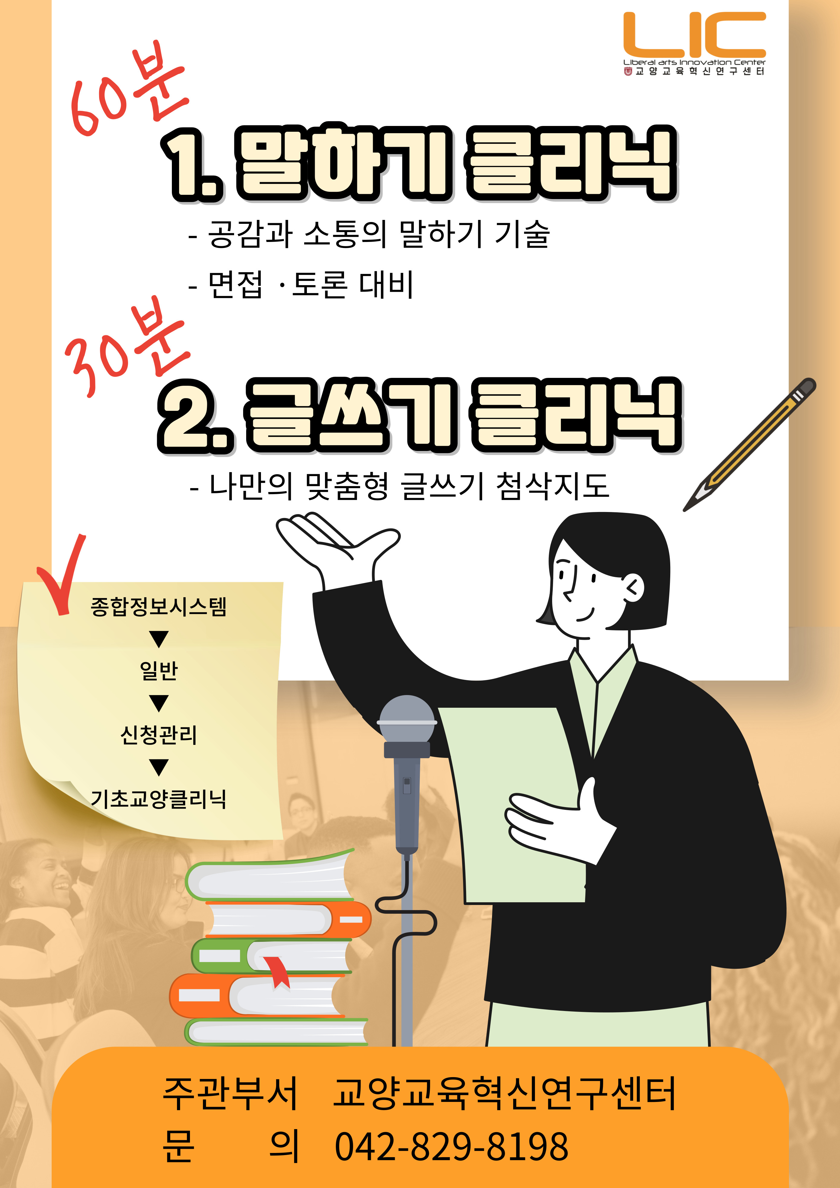言語を学び、文化を理解し、世界に出よう!,学习语言,了解文化,走向世界!교양교육혁신연구센터에서는 2022-2학기 기초교양클리닉(글쓰기, 말하기, 영어, 코딩 클리닉)과 기초이공학클리닉(수학, 과학 클리닉)을 운영 중에 있으며 학기 중 재학생들을 대상으로 수시로 이용자들을 모집하고 있습니다. 많은 재학생들의 관심과 참여 바랍니다.
