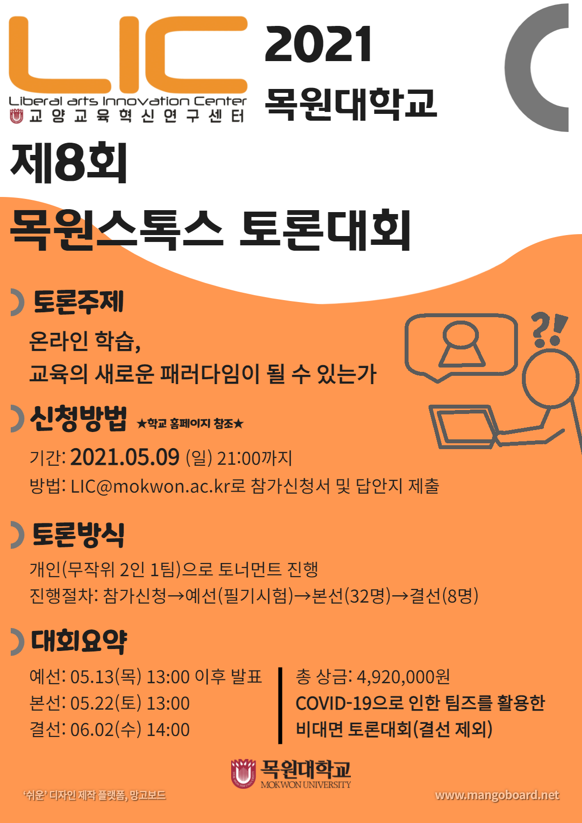 가. 내 용: 2021-1학기 제8회 목원스톡스 토론대회 참가자 모집
