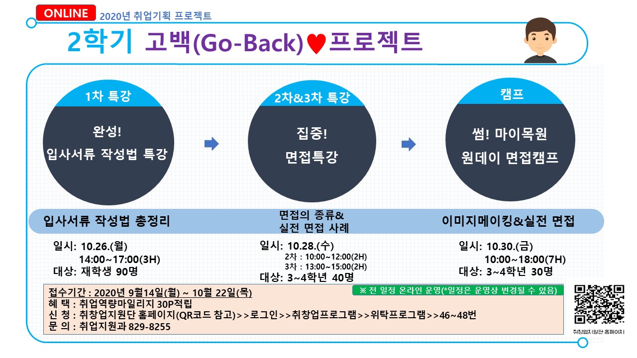 1. 사 업 명: 2020년 2학기 취업기획 프로젝트 고백(GO-BACK)