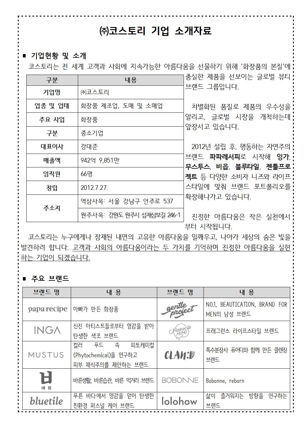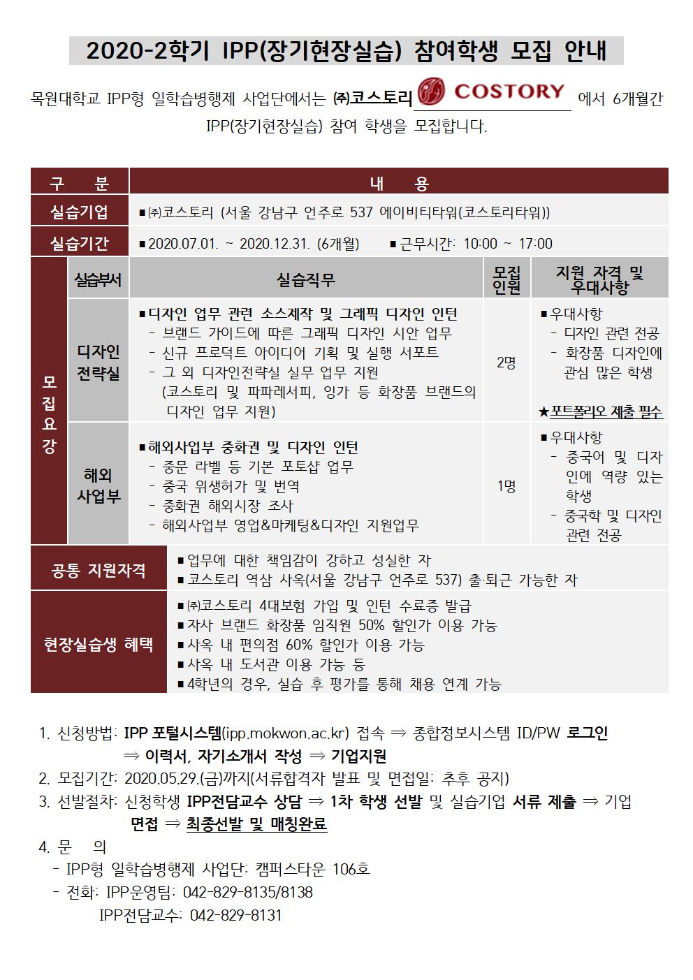 코스토리 그룹 2020 장기 현장실습 안내 입니다.