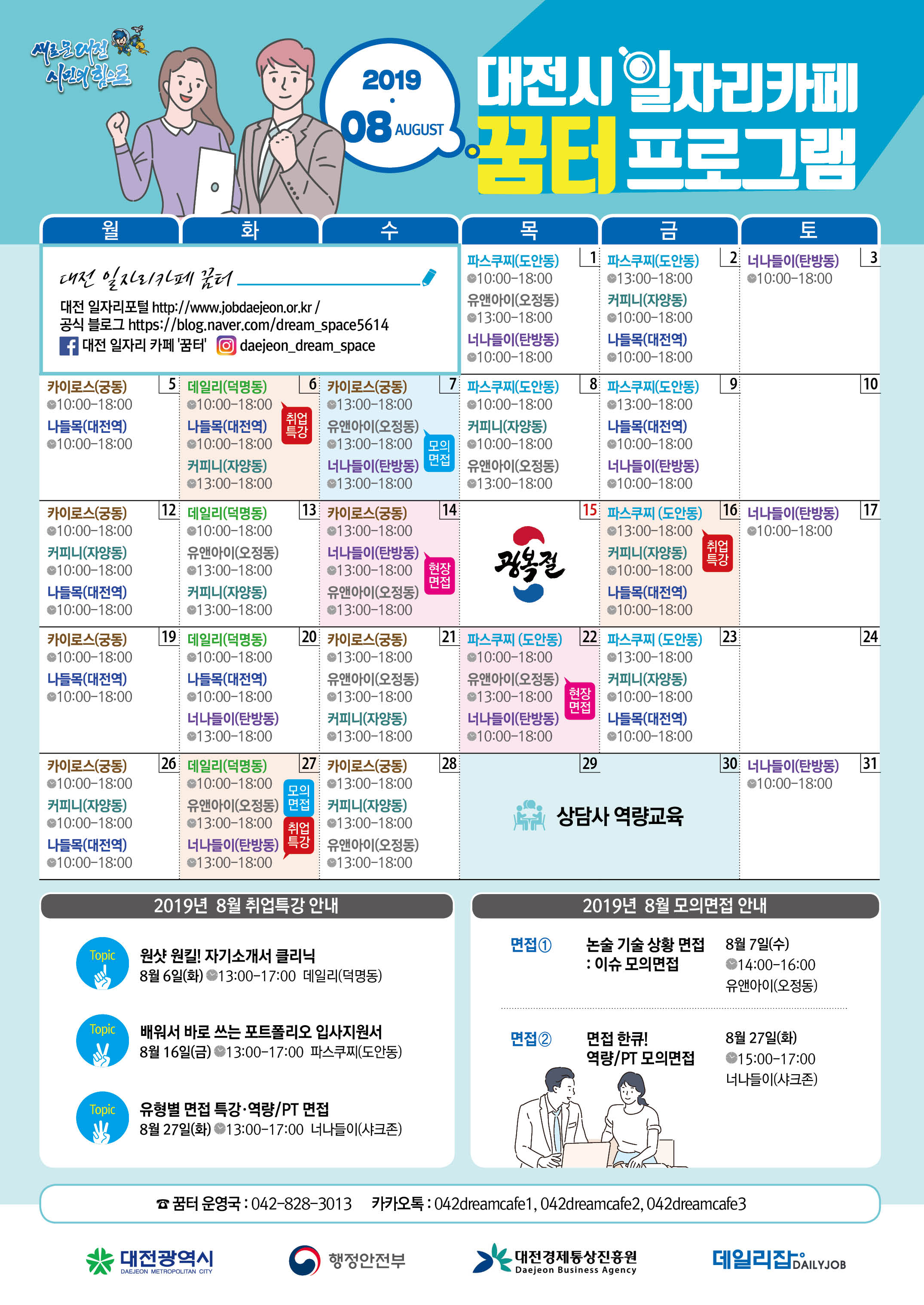 가. 내 용: 대전시일자리카페 꿈터 8월 프로그램 안내