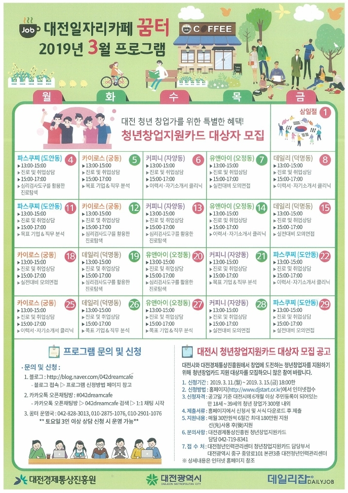 가. 내 용: 대전일자리카페 꿈터 3월 프로그램 안내