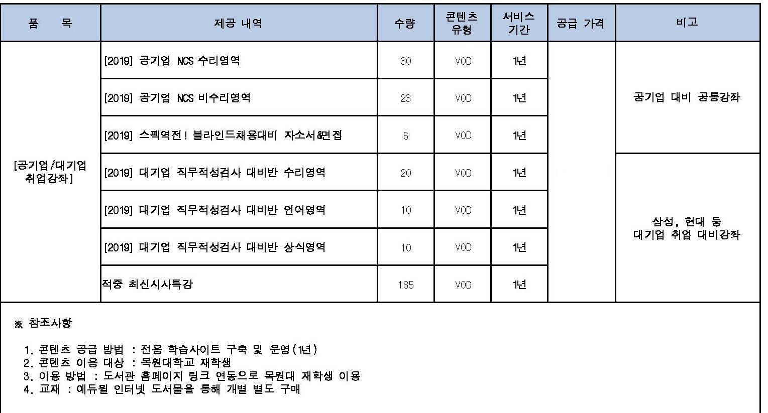 가. 내용 : 에듀윌 공기업/대기업 취업지원 콘텐츠(NCS 및 직무적성) 구독(7개영역 289강좌)