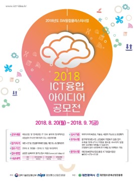 창업교육센터에서는 (재)대전정보문화산업진흥원에서 시행하는 ICT융합 아이디어 공모전에 관심있는 학생이 참여할 수 있도록 홍보 요청드립니다.