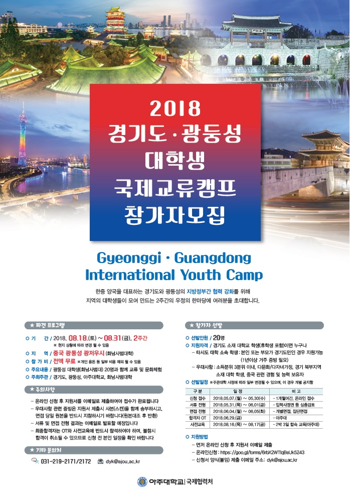 「2018년 경기도-광둥성 대학생 국제교류캠프(제2회)」참가자 모집 알림