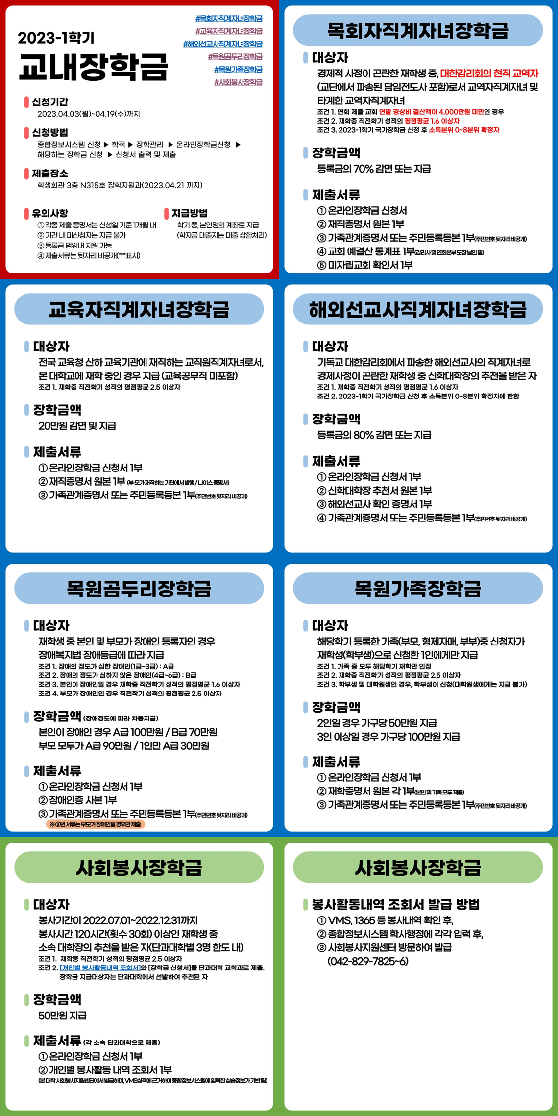 1. 신청대상 : 2023-1학기 등록한 재학생 중 해당 장학금 수혜 요건을 갖춘 자