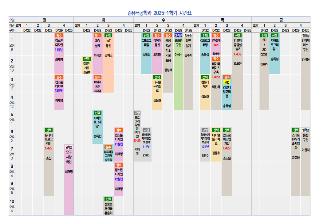※ 정보보호개론(야간)의 경우 화요일 10,11,12(18:00~21:00)에 진행됩니다.