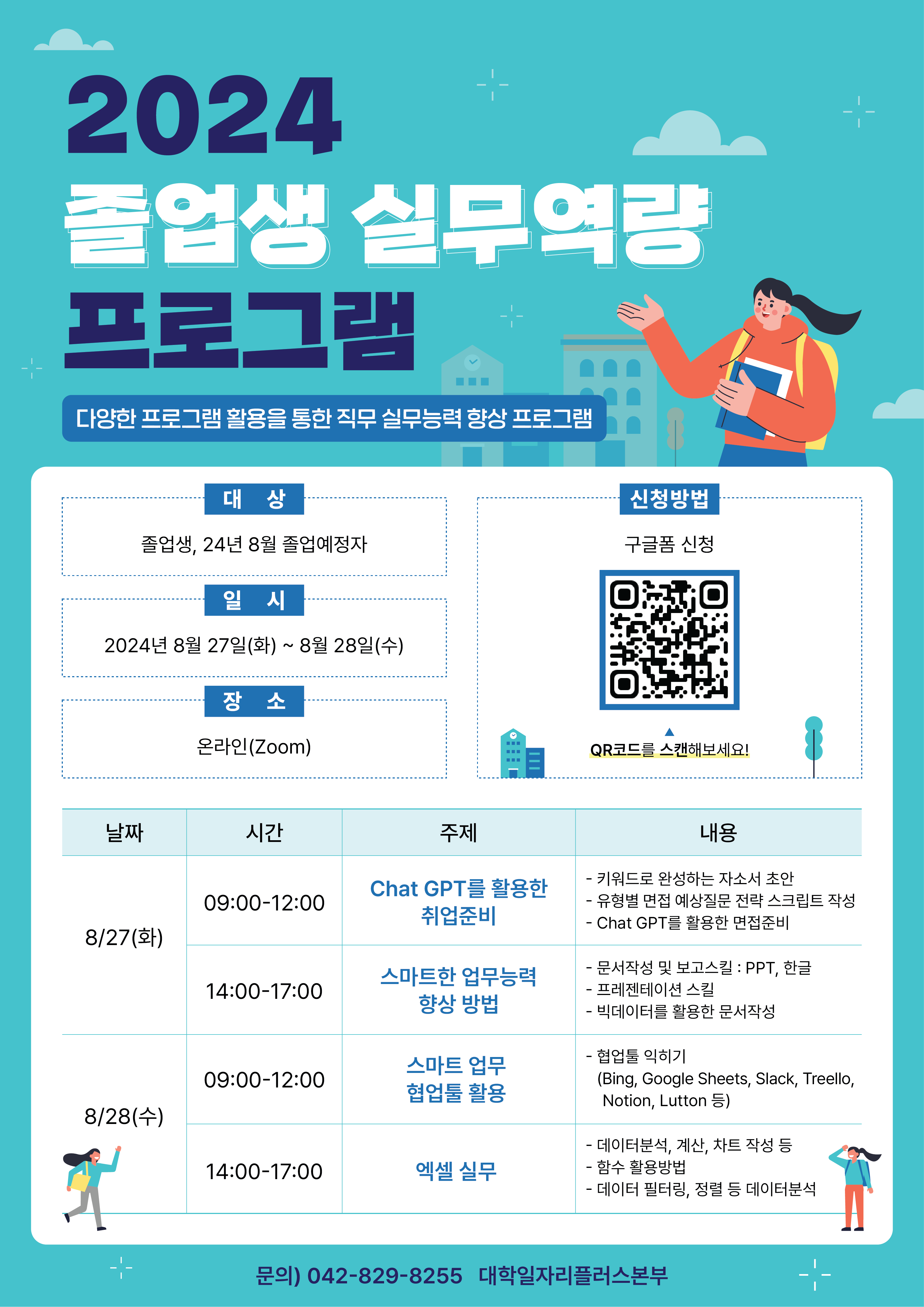 본교 대학일자리플러스본부에서는 2024년 졸업생 실무역량강화 프로그램을 아래와 같이 진행하고자 합니다.
