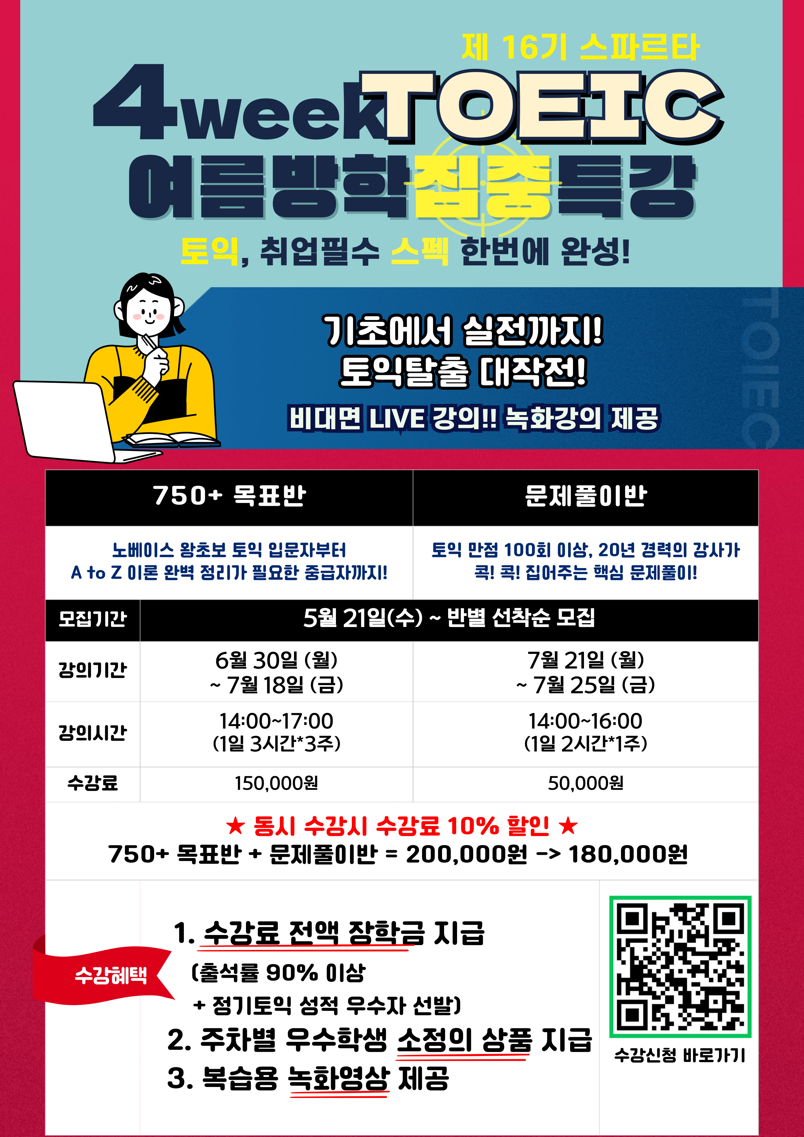 [2025학년도 하계 16기 스파르타 4주 완성 토익과정 안내]