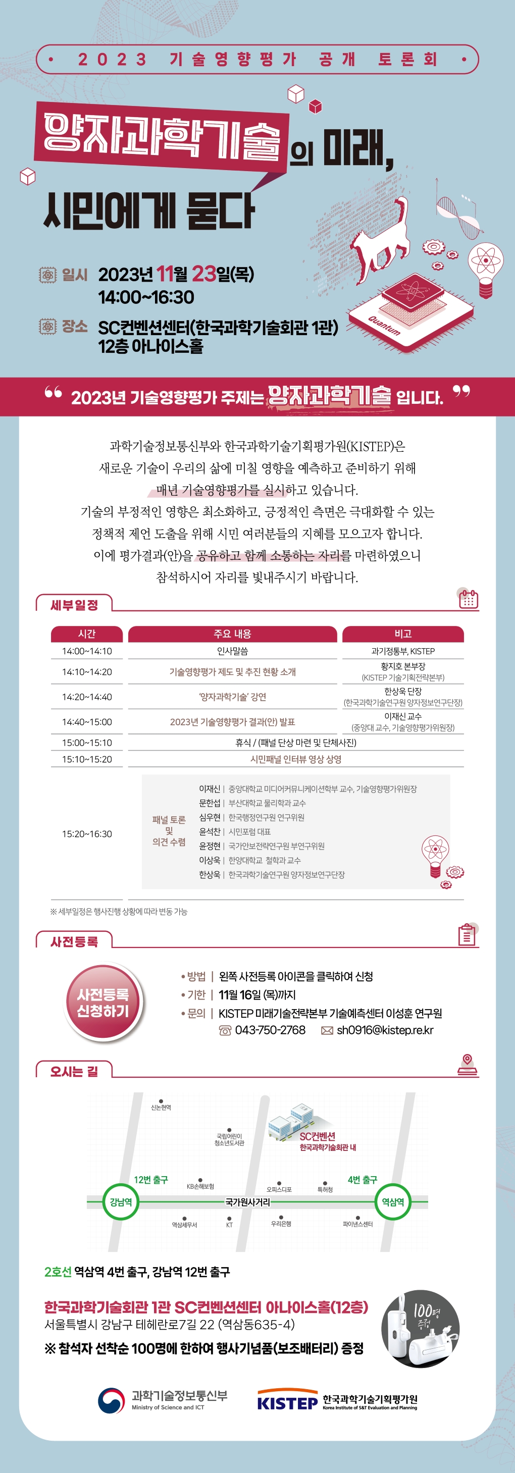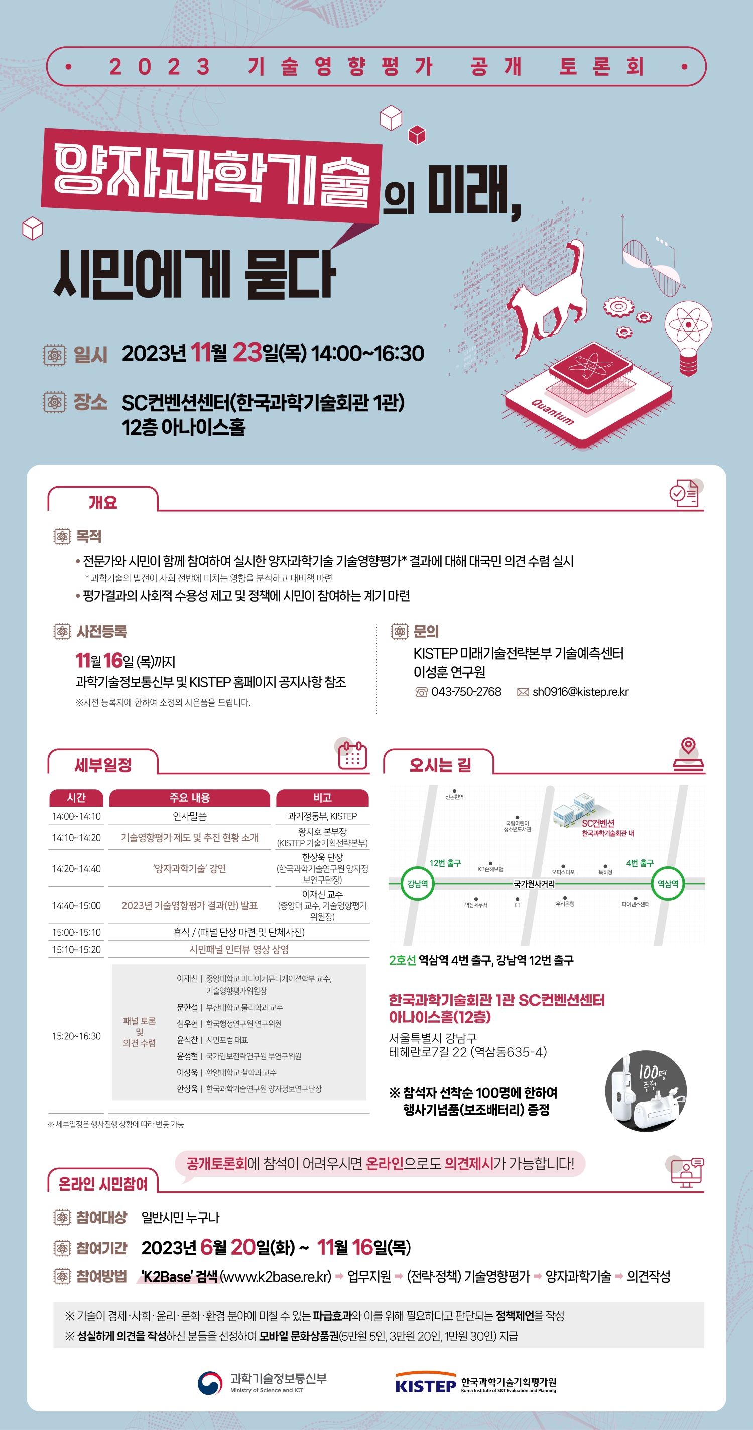 2023년 기술영향평가 공개 토론회「양자과학기술의 미래, 시민에게 묻다」는 전 국민 누구나 참석 가능합니다.