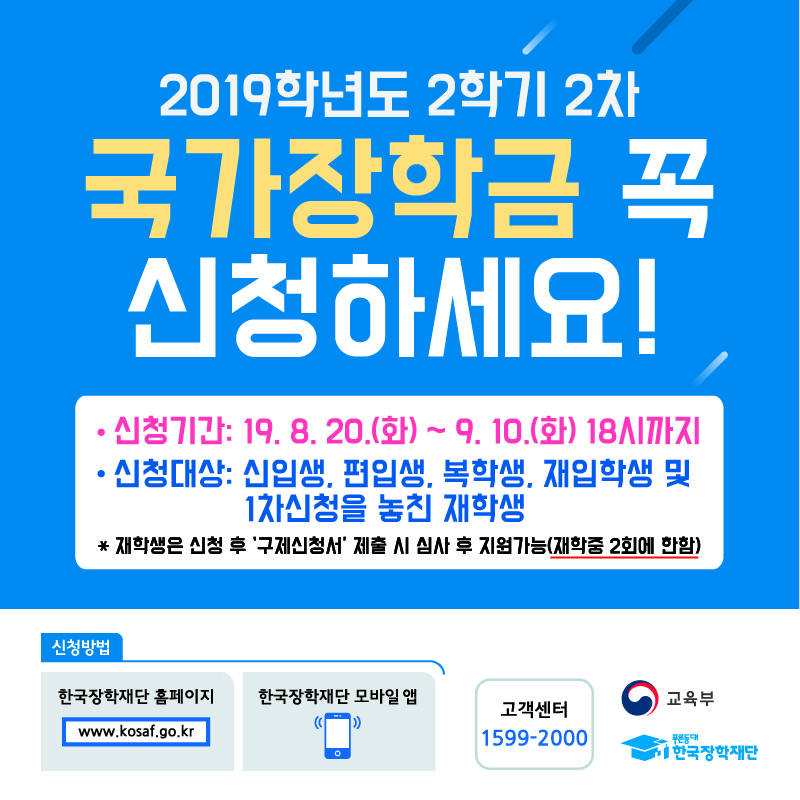 신청 대상은 신입생·편입생·재입학생·복학생이며, 구제신청서를 제출한 학생에 한하여 재학생도 구제신청이 가능하므로 1차 신청을 놓친 재학생들도 신청 하시기 바랍니다.