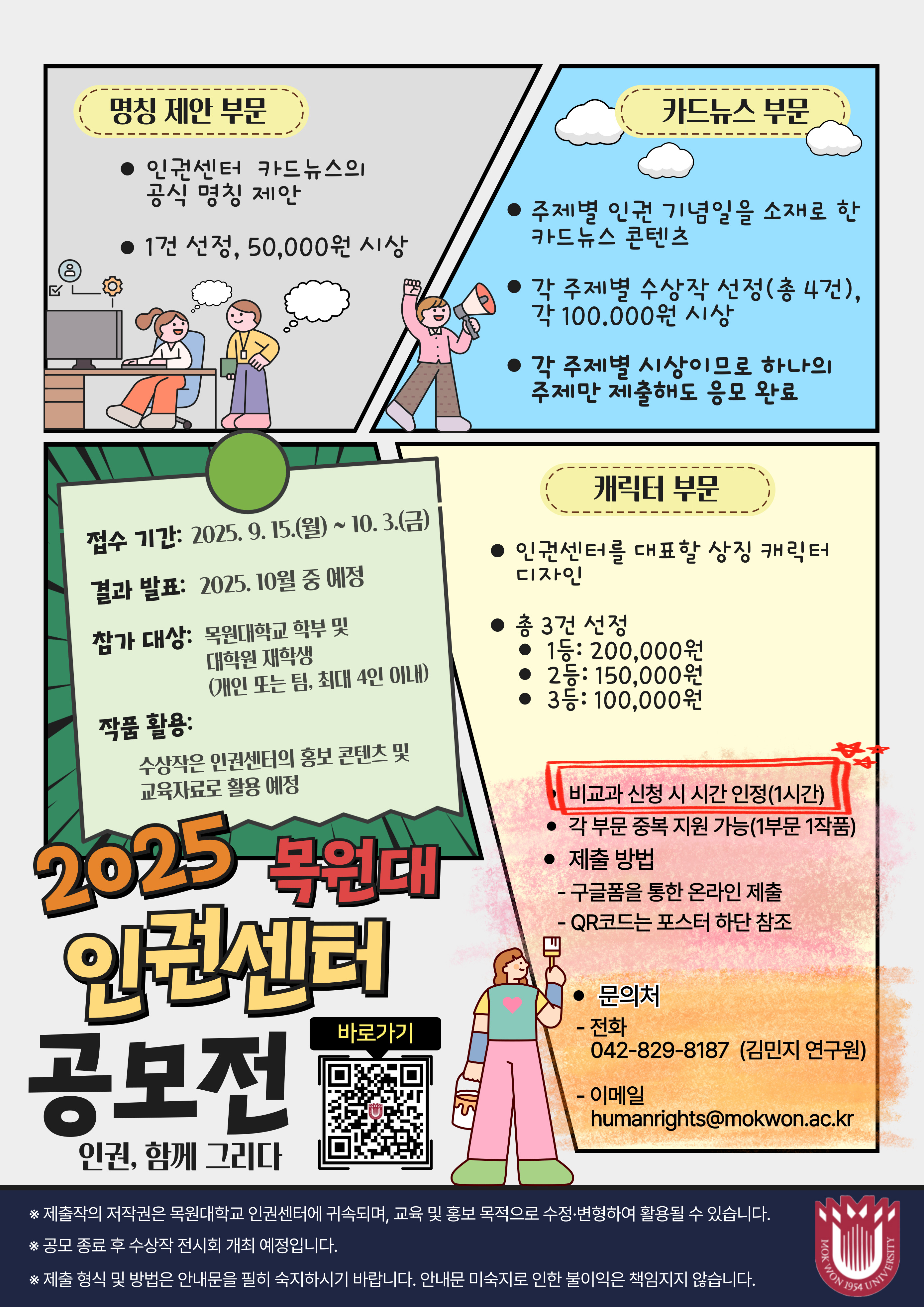 2025 목원대 인권센터 공모전 "인권, 함께 그리다" 안내