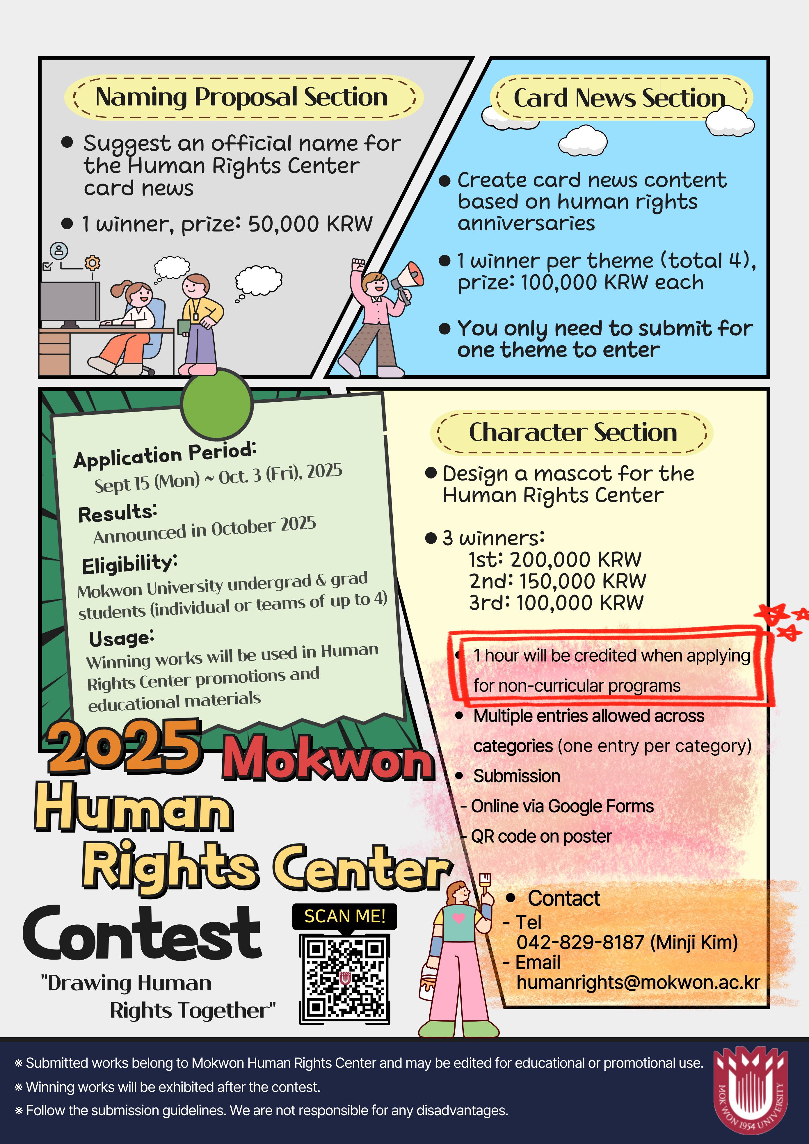 ▶ 문의: 인권센터 김민지 연구원 (T. 042-829-8187 / E. humanrights@mokwon.ac.kr)