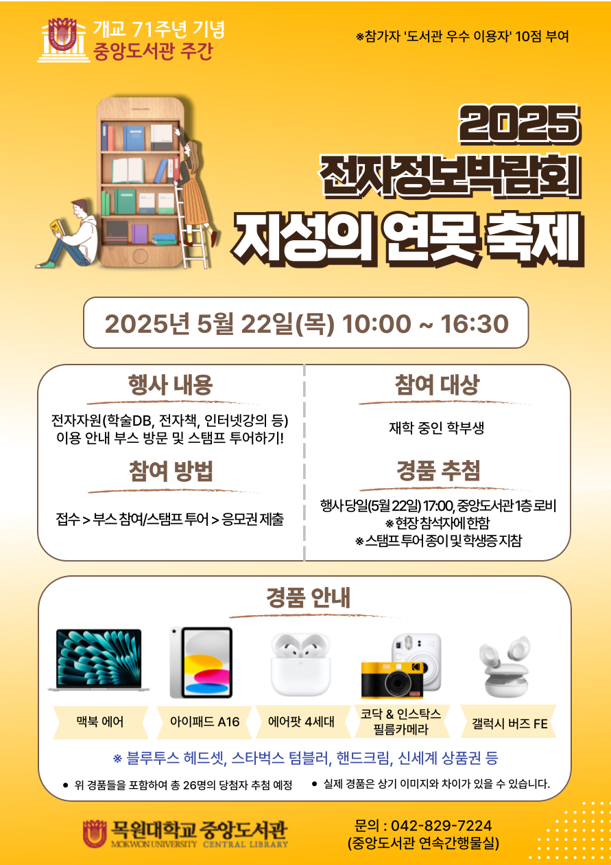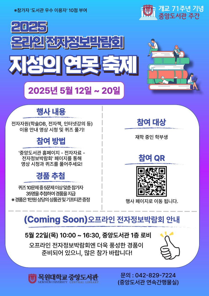 나. 오프라인 : 5월 22일(목) 10:00 ~ 16:30, 중앙도서관 1층 로비