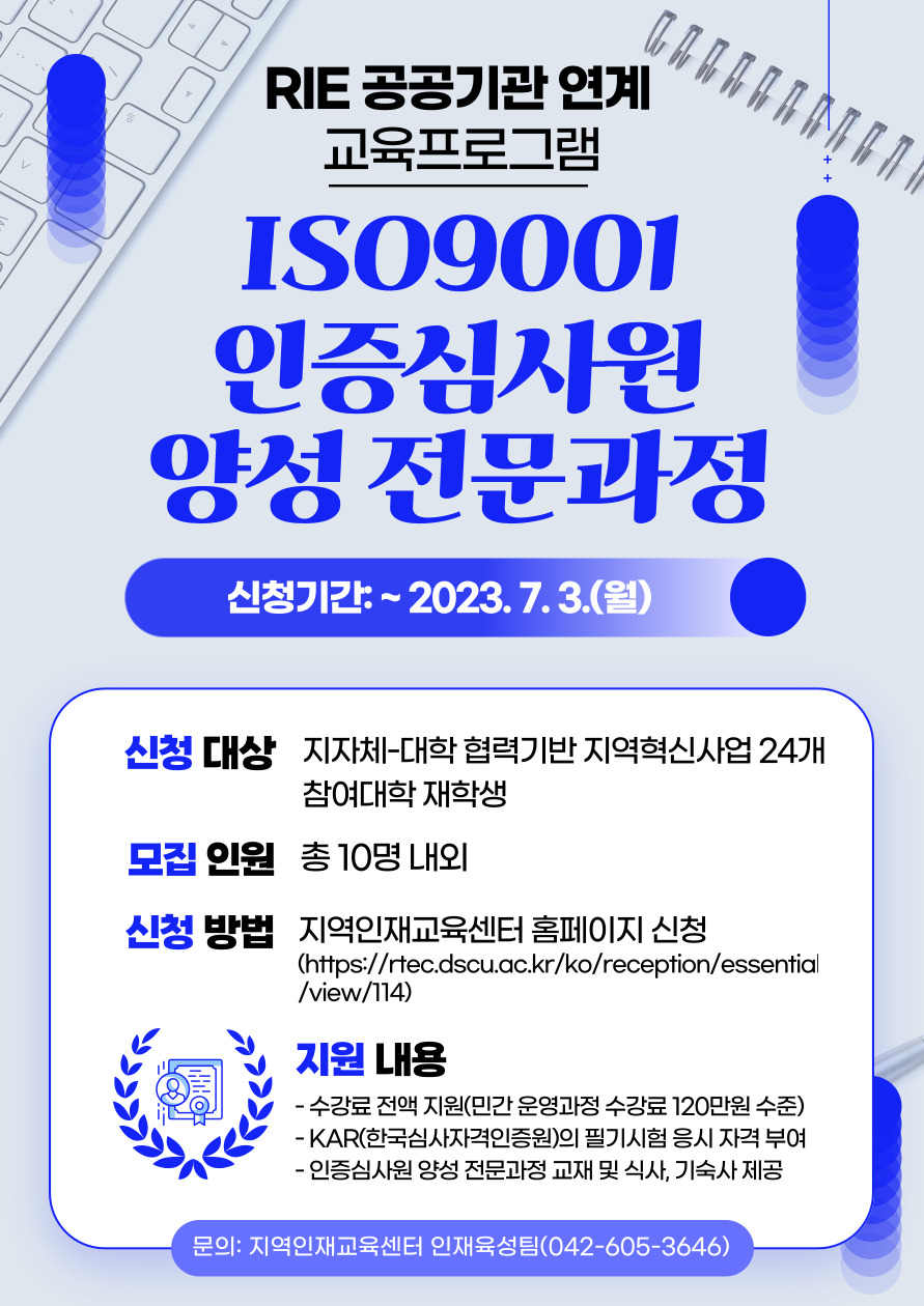 3. RIE 공공기관 연계 교육프로그램(ISO9001 인증심사원 양성 전문과정) 홍보 포스터 1부. 끝.