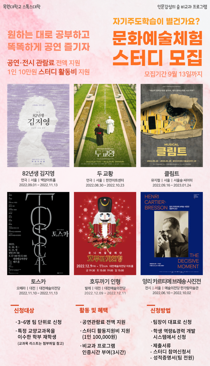 스톡스대학에서는 2022-2학기 인문감성의 숲 비교과 프로그램 운영하오니,