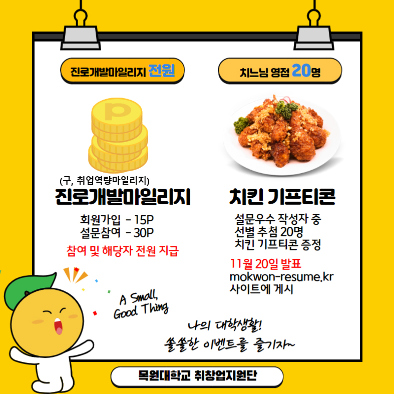 사. 혜 택: 회원 가입 시 진로개발마일리지 15P적립 / 설문조사 참여 시 30P 적립