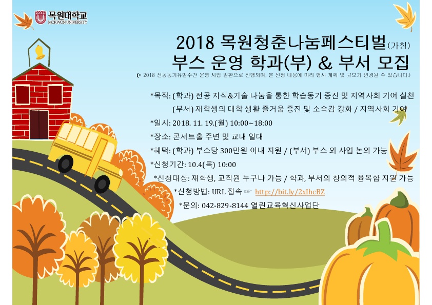 부스운영 신청기간: 지금부터 ~ 2018.10.4.(목) 10:00까지