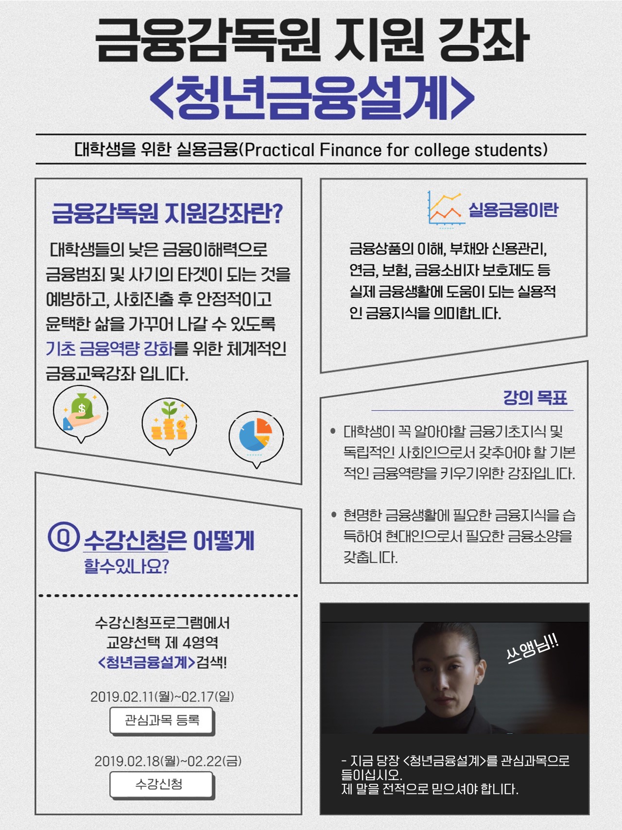 금융감독원 지원강좌 <청년금융설계> 수강신청 안내