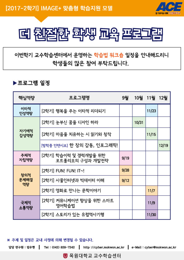 [ACE+] 2017-2학기 학습법 워크숍 일정 안내