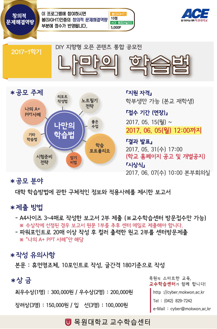 [ACE+] 2017-1학기 "나만의 학습법" 공모전 기간연장 안내