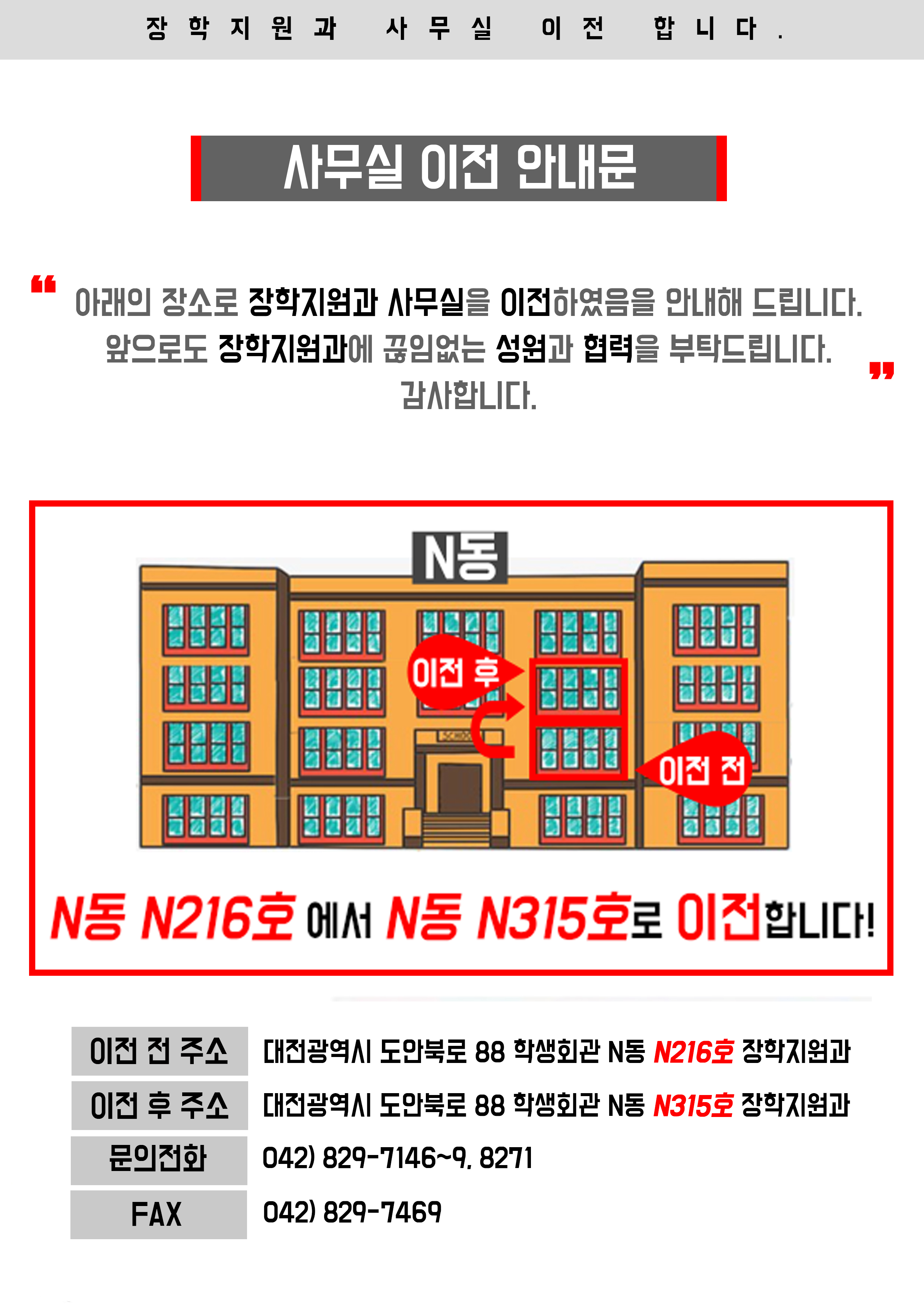 [필독] 장학지원과 사무실 이전 안내