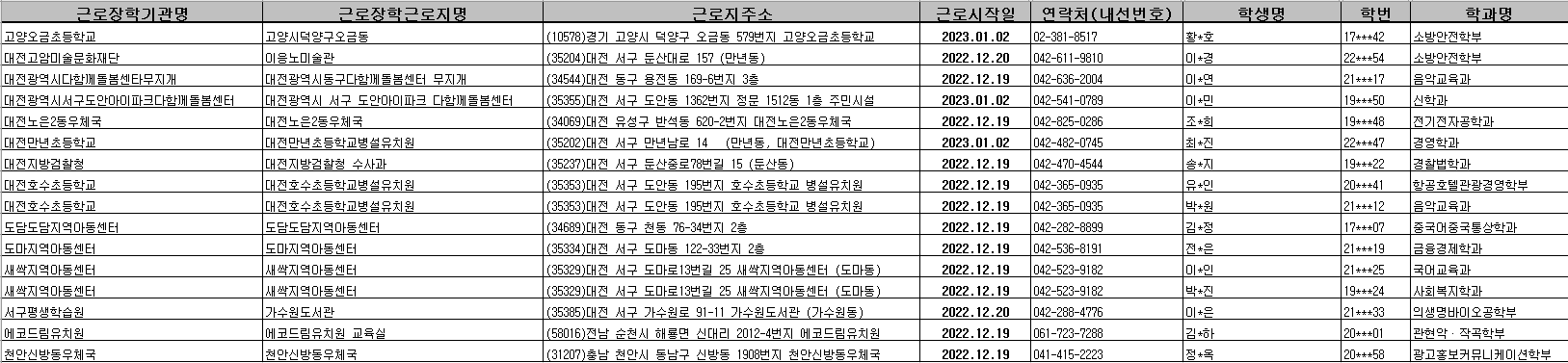 - 선발된 학생은 반드시 근로 시작일 전 근로지 연락처로 연락하여 업무스케줄 관련 협의 진행