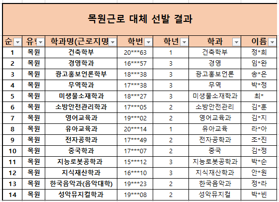 마. 명단에 없는 학생은 탈락입니다. 대체선발이 진행되고 있으니 많은 참여 바랍니다.