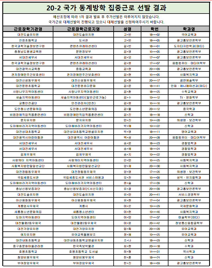 MOKWON UNIVERSITY2020-2학기 동계방학 목원근로, 국가근로 대체선발자를