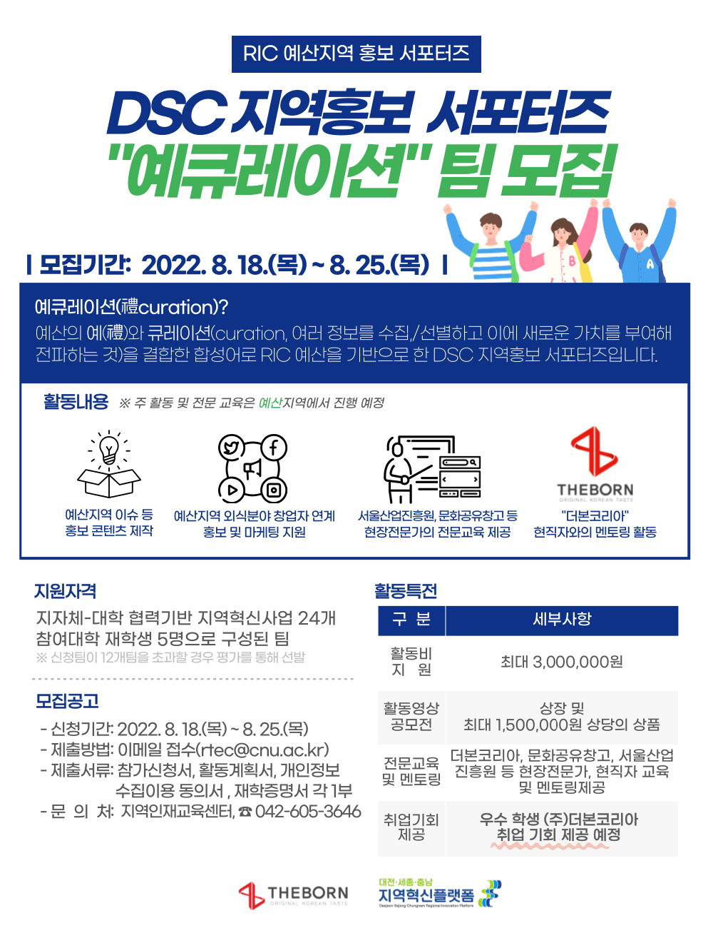MOKWON UNIVERSITYDSC 지역홍보 서포터즈 예큐레이션 운영 계획을 다음과 같이 알려드리니, 관심있는 학생은 참여하여 주시기 바랍니다.