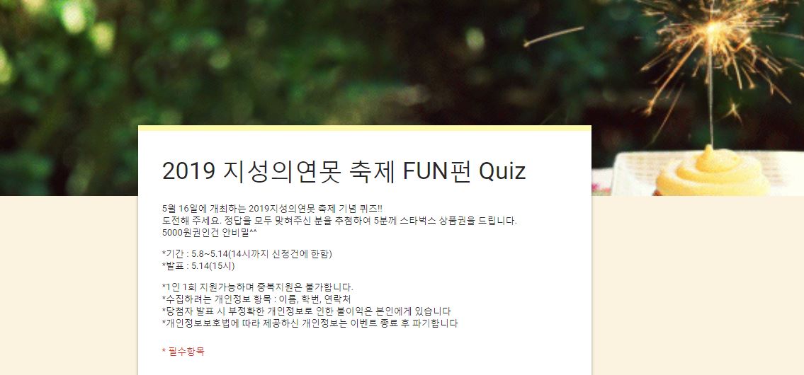 결과발표 완료... ^^ 5분 축하드립니다. 도서관 홈페이지 공지글 1614번을 확인해 주세요