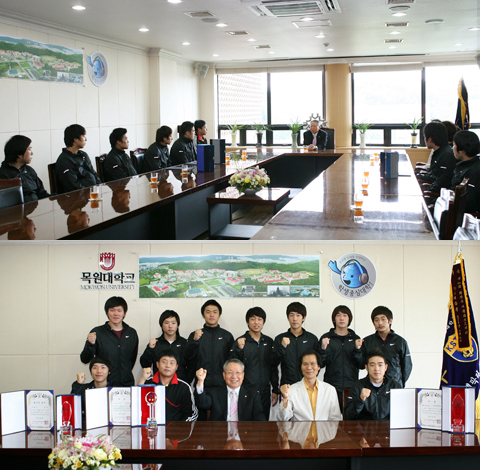 세팍타크로팀 회장기대회 우승 총장 격려