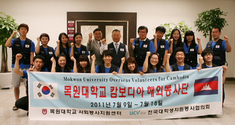 김원배 총장은 8일(금) 오전 10시 30분 본부 회의실에서 9일(토) 캄보디아로 해외봉사를 떠나는 “목원 해외봉사단‘ 출정식에 참석, 참가 학생들을 격려하였다.