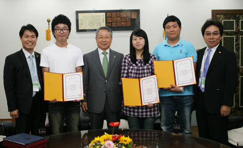6월 28일(화) 오전 11시, 본부 회의실에서 김원배 총장은 인력개발원 주관으로 이루어진 제14회 모의토익 경시대회에서 우수한 성적을 거둔 학생들에게 격려 및 장학증서를 수여하였다.