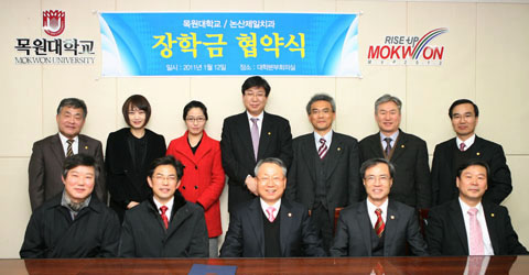 우리대학교(총장 김원배)는 1월 12일(수) 오후 5시 대학본부회의실에서 논산제일치과(원장 오진섭)와 ‘미술문화 향유권(미술작품 전시) 제공 및 한국화전공 우수인력 양성을 위한 장학지원 협약’을 체결하였다.