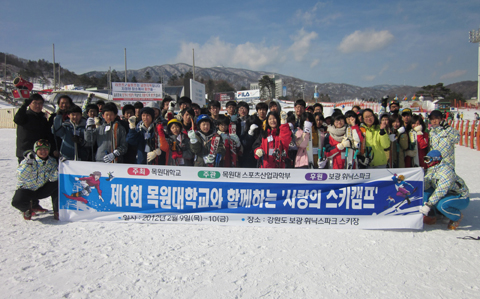 우리대학은 지난 9일(목)부터 10일(금)까지 1박 2일간의 일정으로 강원도 보광 휘닉스파크 스키장에서 대전 시내 중․고등학생들을 대상으로 ‘목원대학교와 함께 하는 사랑의 스키 캠프’를 열었다.