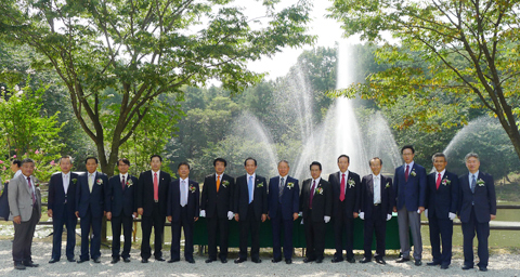 8월 31일(수) 오전 11시 30분 테니스장 위에 위치한 연못에 분수대를 설치하여 박거종 이사장, 김원배 총장, 정책위원들이 참석한 가운데 시연하였다.