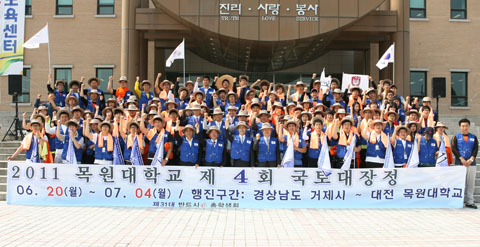 우리 대학교는 6월 20일(월) 교내 중앙광장에서 120명의 학생들이 참석한 가운데 제4회 국토대장정 출정식을 갖고 21일(화)부터 오는 7월 4일(월)까지 14박 15일 동안의 일정으로 국토대장정을 펼친다.