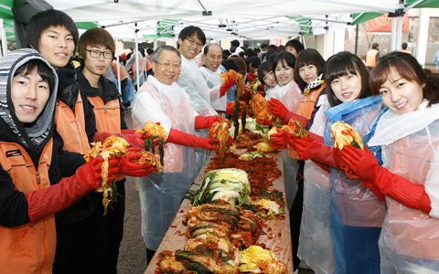 19일(금) 오전 10시 학생회관 광장에는 김원배 총장을 비롯한 교내 인사들과 사회복지학과 교수와 학생, 대전시 동사무소 및 사회복지관 담당자 등 총 300여 명이 참여해 담은 김장김치는 20일(토)과 21일(일) 각 가정에 학생들이 직접 전달했다.