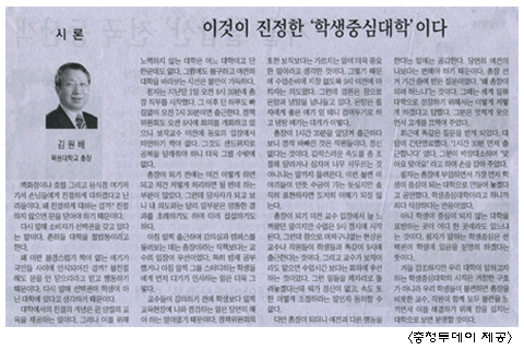 필자는 총장에 부임하면서 가장 먼저 학생이 중심이 되는 대학으로 만들어 놓겠다고 공언했다. 학생중심대학이라고 하니까 죄다 식상하다는 반응이었다.