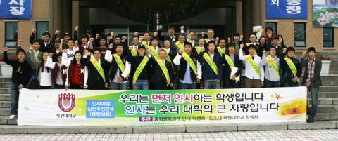 캠페인은 총장과 총학생회, 교수협의회, 노동조합 등이 참석하여 출범식을 가졌고‘눈으로 말하세요, 스마일! 입으로 말하세요, 안녕하세요!’ 라고 웃으며 서로 인사를 나눴다.