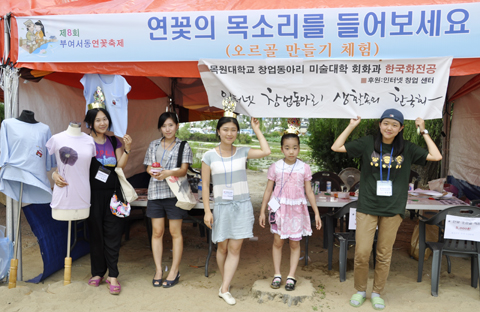 우리대학교 미술대학 한국화전공(지도교수 정황래) 학생 창업동아리인 ‘먹빛-香’이 지난 22일(목)부터 25(일)일까지 충남 부여에서 열린 ‘서동연꽃축제’ 행사장에서 관람객들을 대상으로 하는 미술체험 행사와 함께 우리 전통미술 문화상품에 대한 다양한 제품들을 선보이는 행사를 가졌다.