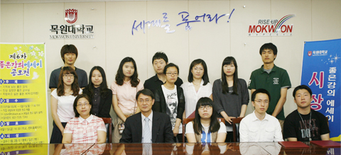 오늘 10시, 회의실에서는 이규금 부총장님을 비롯한 학교관계자들과 13명 수상자가 참석한 가운데 ""제6차 좋은 강의 에세이"" 공모전 시상식을 가졌다.
