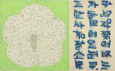 소격동 국제갤러리에서 열리고 있는 전시에서는 꽃 그림과 풍경화 등 근작 외에 1990년대 작업했던 글자 그림도 볼 수 있다. 글자 그림 속 글자들 역시 어떤 특정한 의미가 있기보다는 그저 시각적인 대상으로서 글자의 모양을 빌려온 것이다.