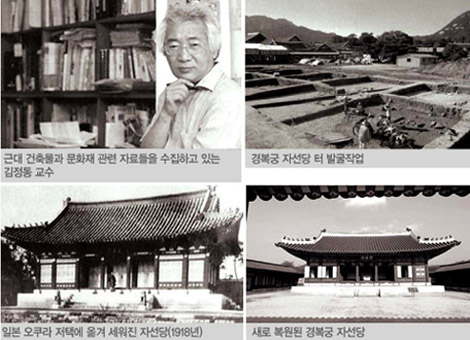 김정동 교수는 1993년 도교대학 객원 연구원으로 일본에 가게 되어 그곳에 남아있는 우리 근대사 자료들을 조사할 수 있었다. 일본이 약탈해간 우리 것은 어디에 있을까 궁금해 하던 중 도교경제대학의 오쿠라 문서와 데라우치 문서에서 오쿠라가 경복궁의 자선당을 자신의 미술관 경내에 건설하기 시작했다는 정보를 확인했다.