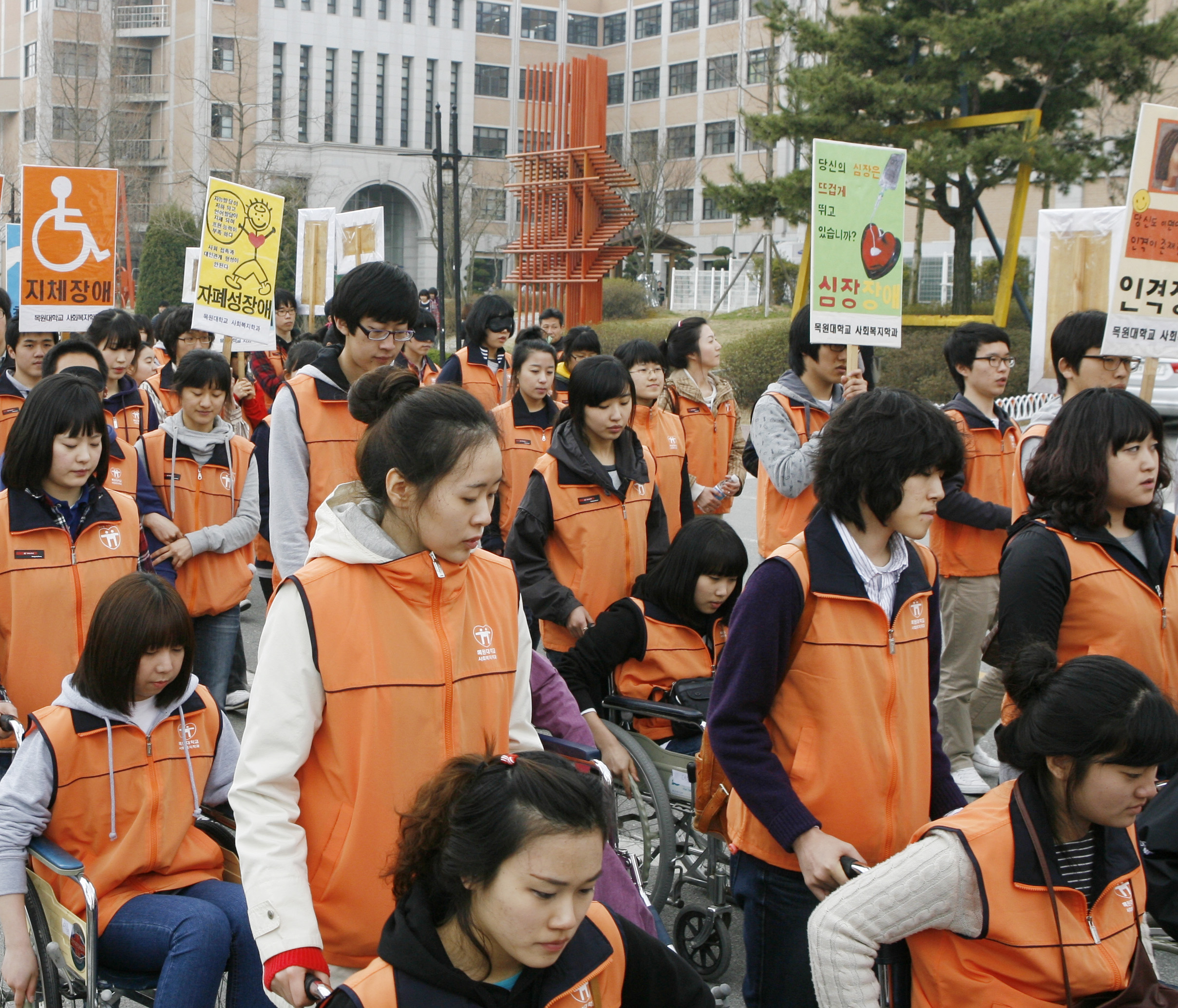 6일(화) 오전 11시 도서관 앞 광장에서 열린 발대식 시작으로, 본격적인 봉사활동을 펼치는 이번 사회봉사 주간에는 각 학과 및 소그룹별 봉사활동 이외에도 ‘4월 장애인의 달’을 맞아 장애인 관련 봉사와 생명 나눔 사랑의 장기기증 운동 및 헌혈 등 전 구성원이 공동으로 참여하는 다양한 봉사 참여의 기회를 제공하고 있다.