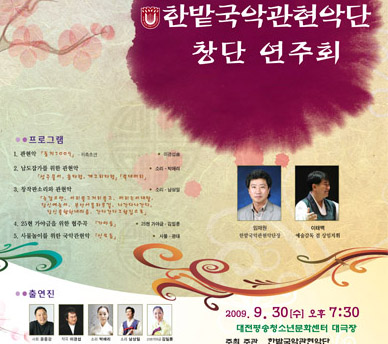 지난 30일(수) 오후 7시 30분부터 대전 평송청소년문화센터 대극장에서 “한밭국악관현악단 창단 연주회”를 가졌다.