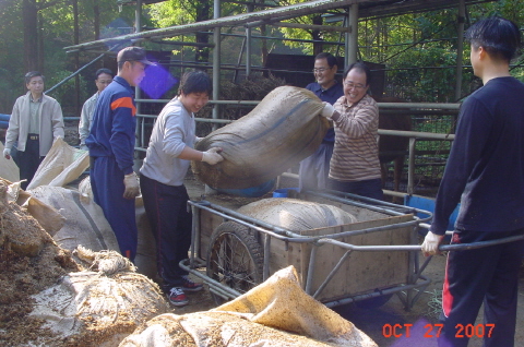 60여명이 참석한 삼보기도원에서 남자직원들은 60여평의 소 막사청소와 퇴비야적 작업을, 여직원들과 가족들은 토란을 베어 나르고 규격에 맞추어 다시 잘라 햇빛에 말리는 작업을 했습니다.